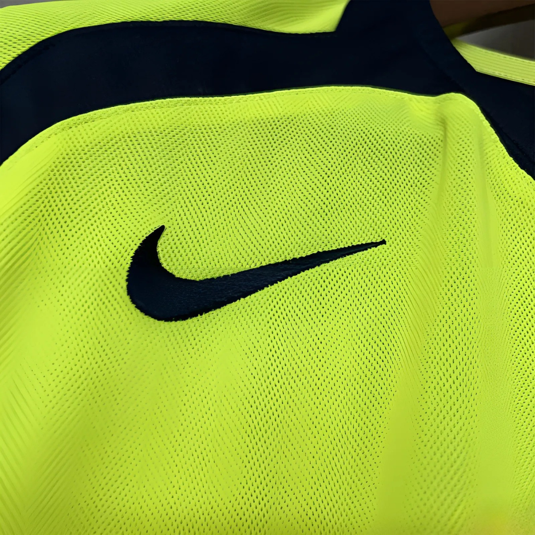 La camiseta del FC Barcelona para la temporada 2005/06 evoca una época dorada liderada por la magia y la sonrisa de Ronaldinho. Bajo la dirección de Frank Rijkaard, el equipo blaugrana desplegó un fútbol espectacular que enamoró al mundo, culminando con la conquista de la segunda Champions League en su historia. Esta temporada marcó la consolidación de un proyecto futbolístico brillante y el reconocimiento de Ronaldinho como el mejor jugador del planeta.